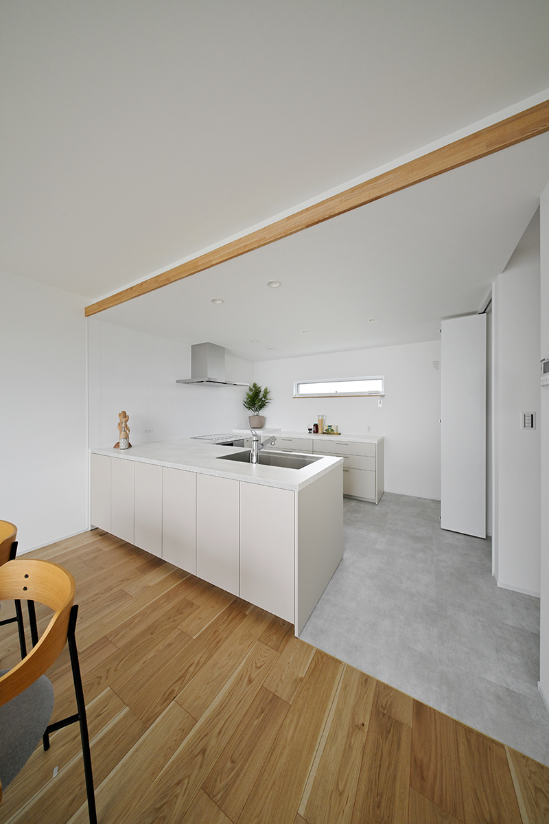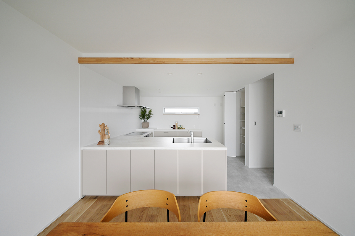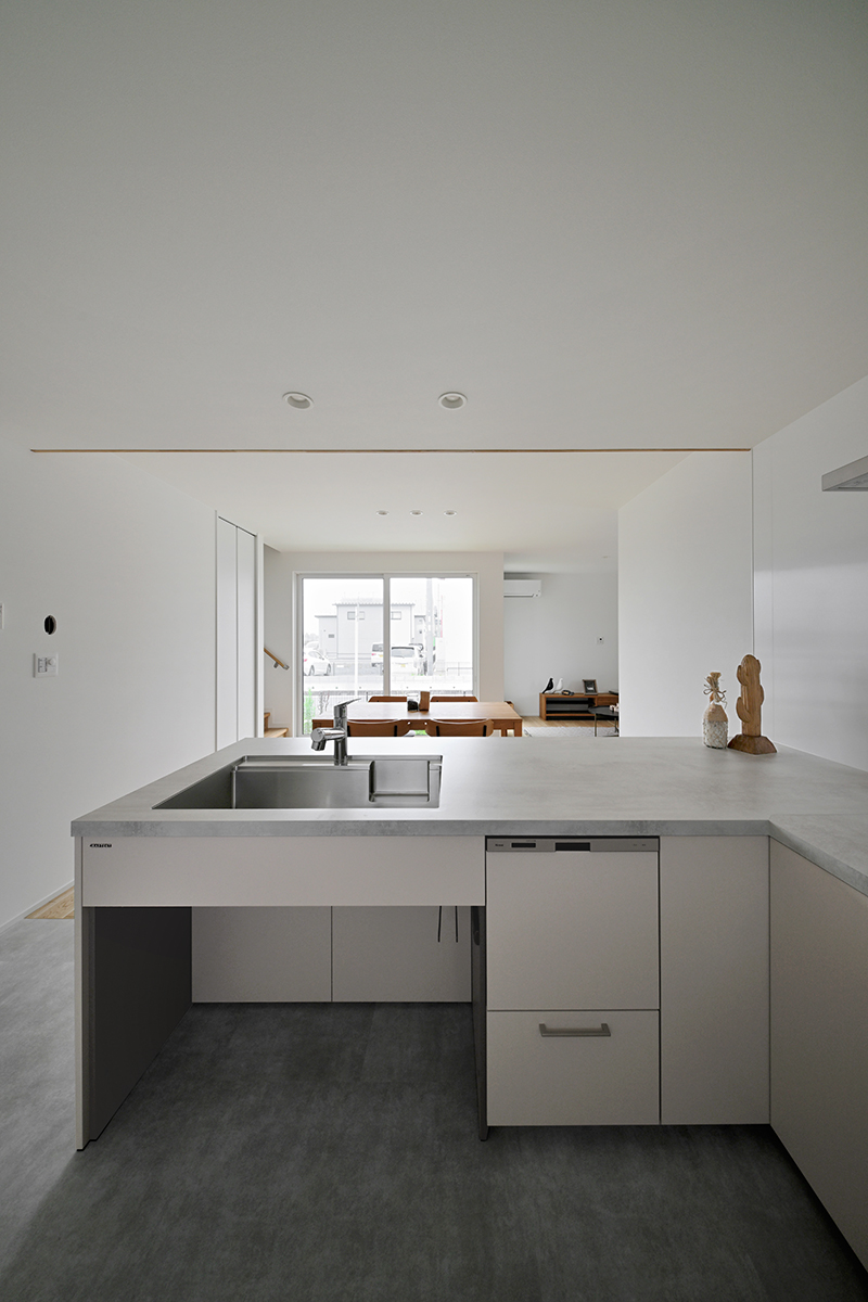 LDKの主役となるように、キッチンを「家具」としてとらえた空間デザイン。