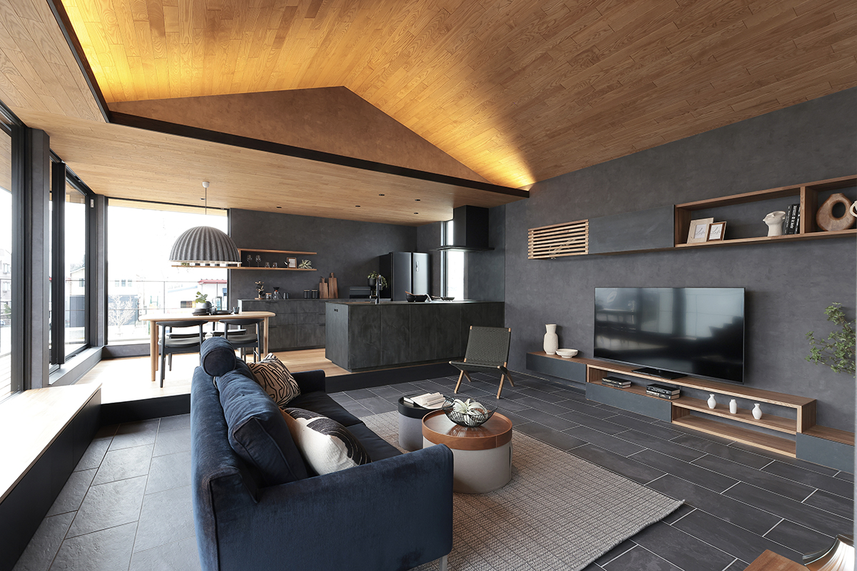 落ち着いたカラーで統一したLDKに、